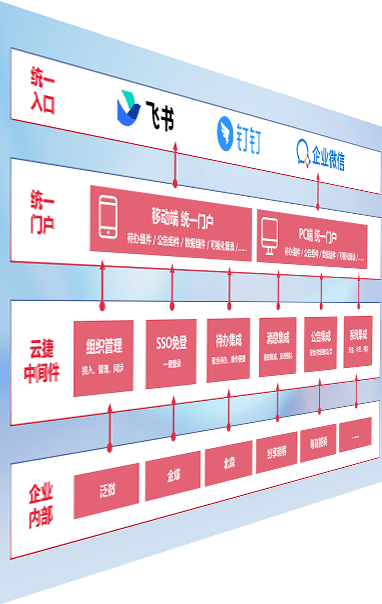 对协作平台提供支持服务,,,,支持企业应用与协作平台对接,,包含组织同步、、、消息集成、、、、待办集成等。。。支持目前主流的协作平台:钉钉、、、企微和飞书。。。